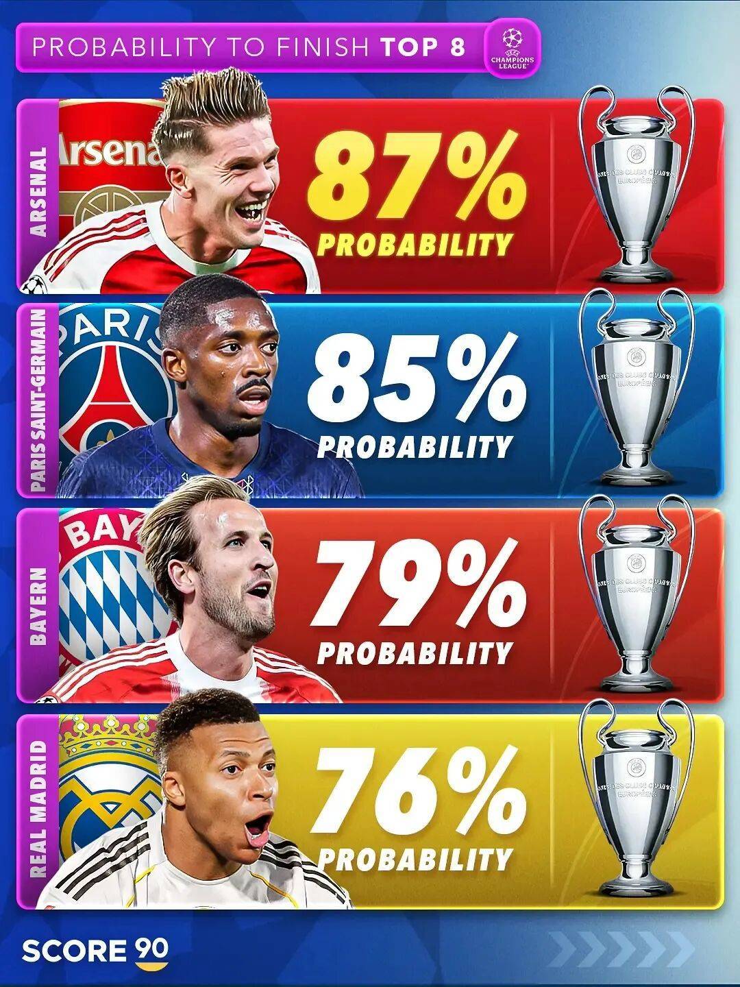 看看欧冠三轮过后的积分榜,就明白五大联赛为什么是五大联赛了,也可更明白欧冠改革的目的